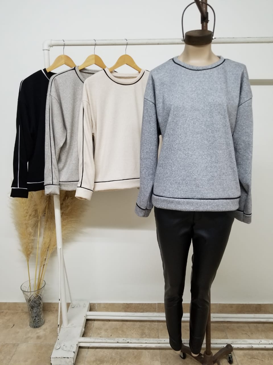 Beige, Gris Melange, Negro, Vison